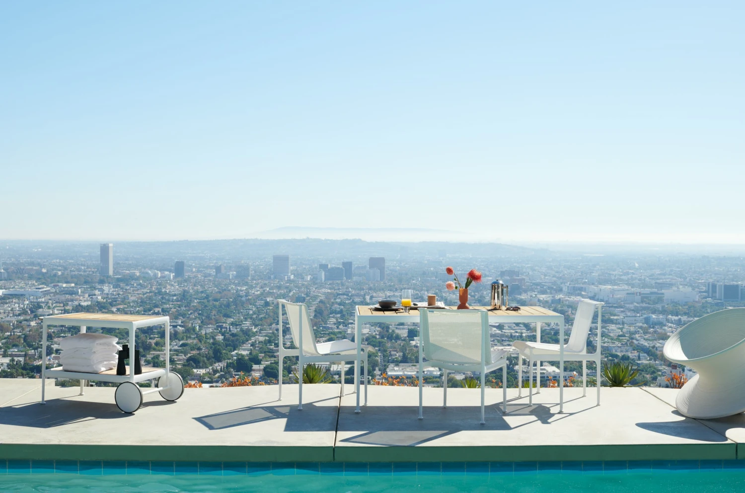 For half a century, Richard Schultz has been designing outdoor furniture, first at Knoll, where he assisted Harry Bertoia and developed his own lines, and after 1972 as a freelancer. He later launched his own collection that included his reissued Knoll classics, including the Petal Table and Leisure Line chaise on wheels, plus new designs such as the Café 2000 Chair and Topiary Chair.