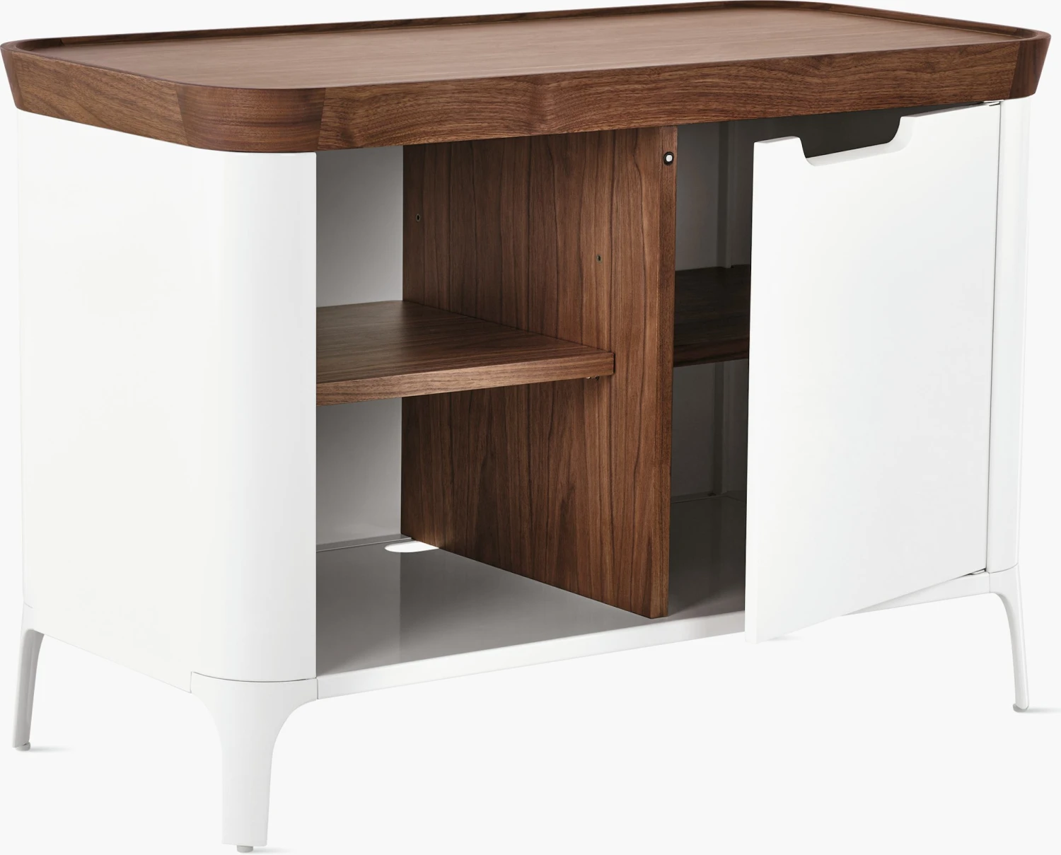 - Features both open and concealed storage.