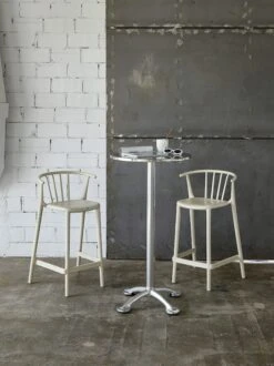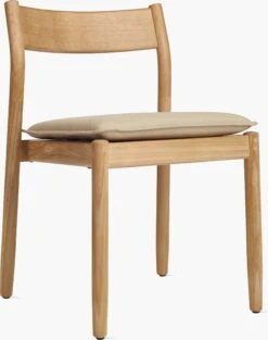 - Modern stackable outdoor dining chair suitable for year-round use.