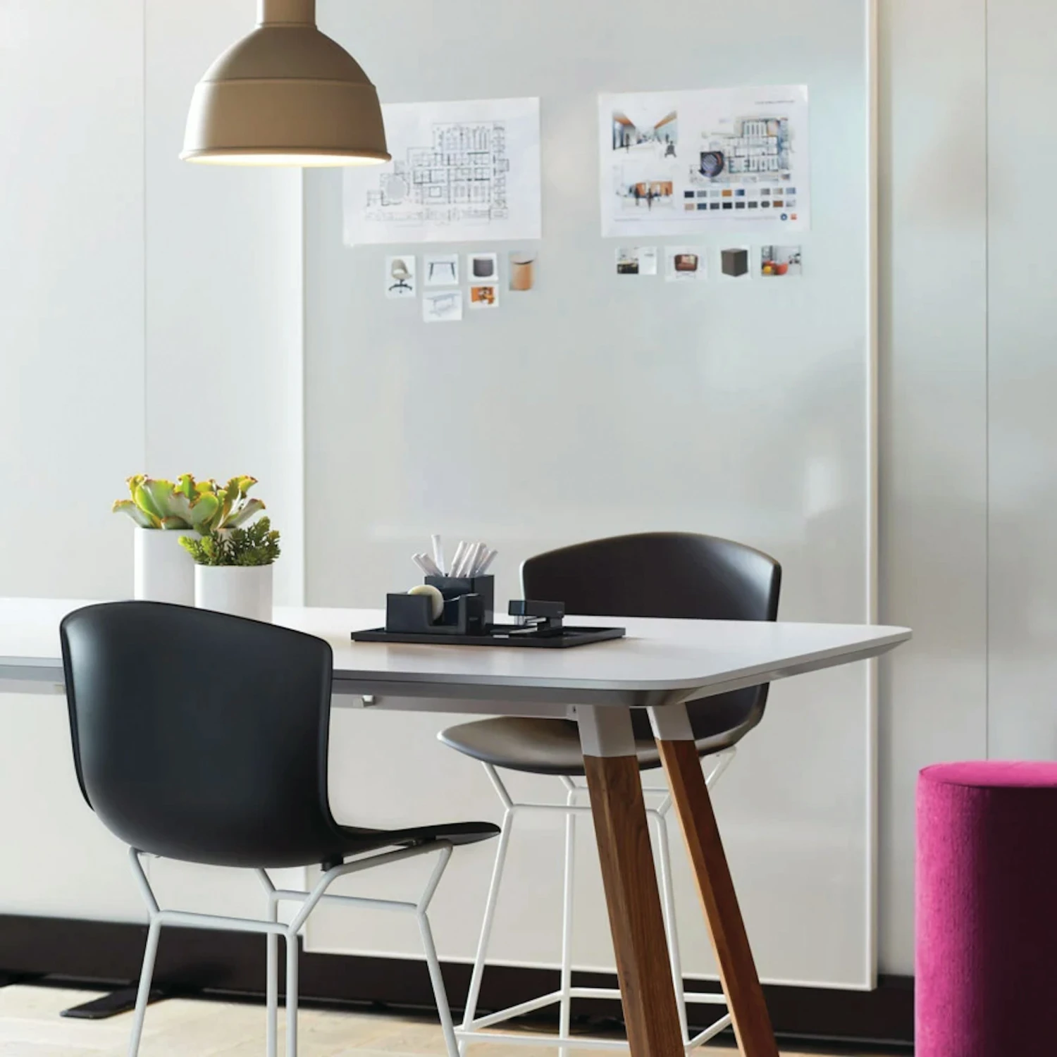Italian artist and furniture designer Harry Bertoia designed the patented Diamond Chair for Knoll in 1952. It was strong yet delicate in appearance, as well as an immediate commercial success. His career began in the 1930s as a student at the Cranbrook Academy of Art, where he re-established the metalworking studio and, as head of that department, taught from 1939 until 1943.