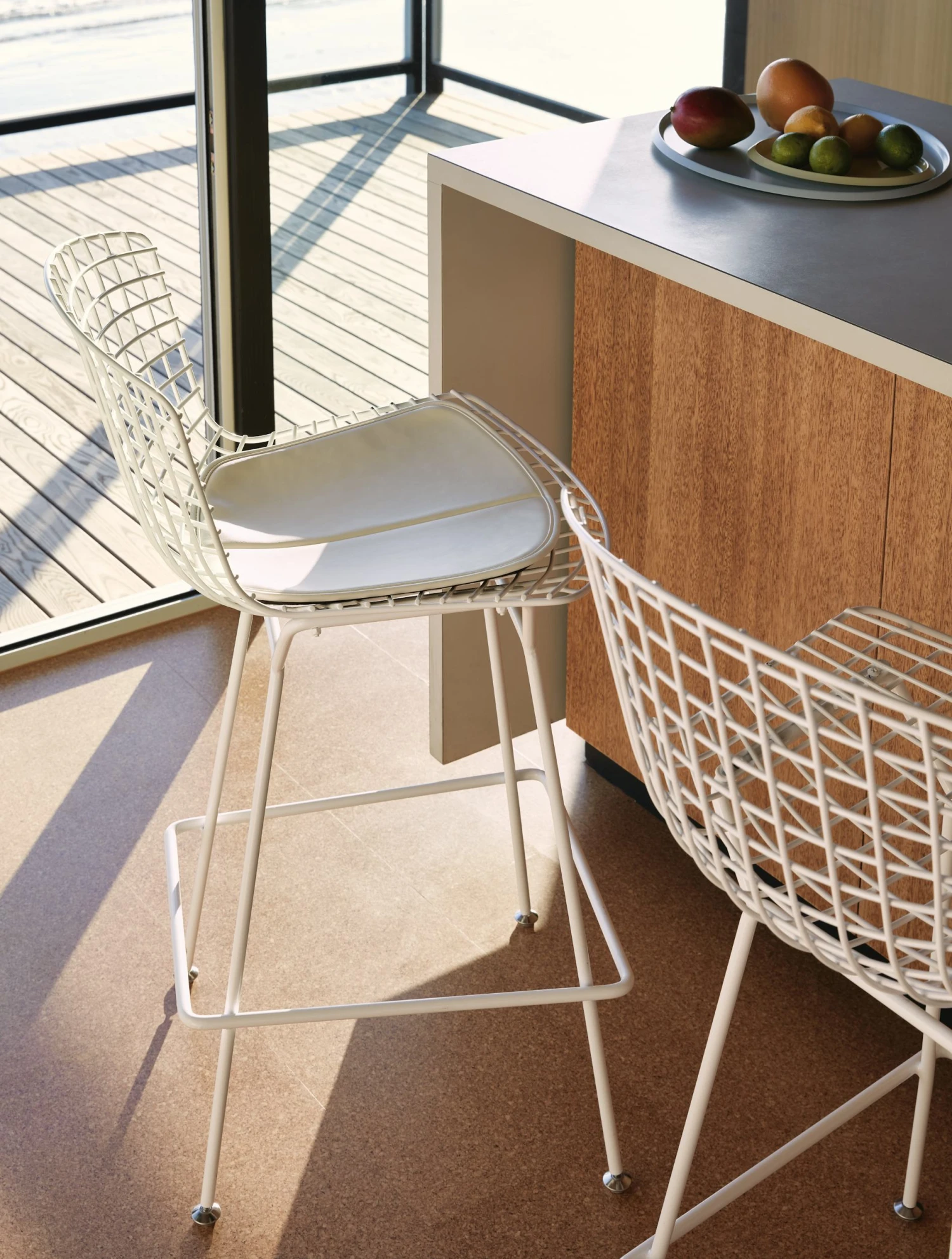 Italian artist and furniture designer Harry Bertoia designed the patented Diamond Chair for Knoll in 1952. It was strong yet delicate in appearance, as well as an immediate commercial success. His career began in the 1930s as a student at the Cranbrook Academy of Art, where he re-established the metalworking studio and, as head of that department, taught from 1939 until 1943.