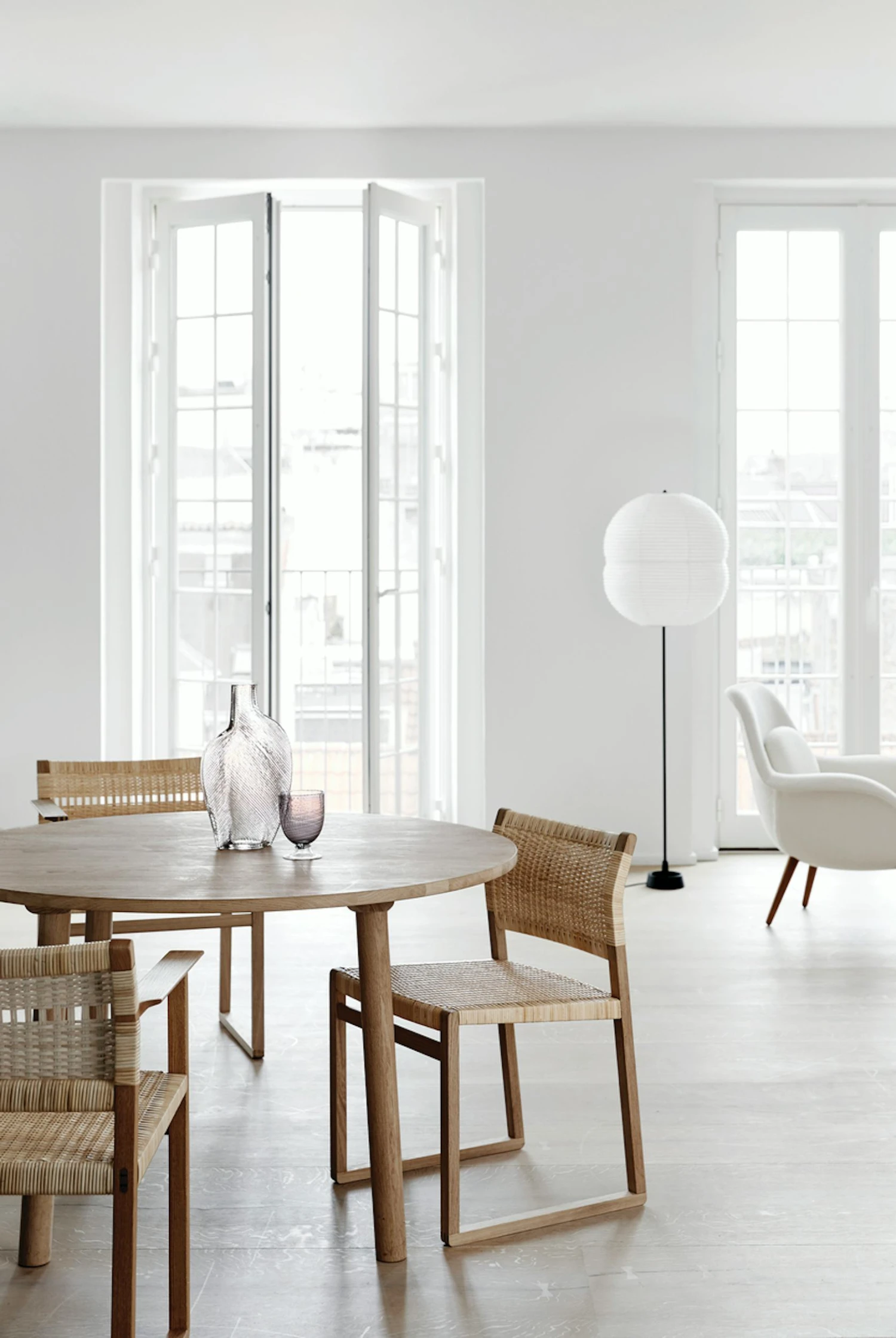 Børge Mogensen studied under and worked for Kaare Klint, the father of Danish modern design, and later was his teaching assistant at the Royal Academy. Klint’s emphasis on human scale, excellent materials, functionalism and craftsmanship influenced Mogensen, though he adopted an embrace of mass production and a hellbent calling to lighten the heavy Danish furniture of the past.