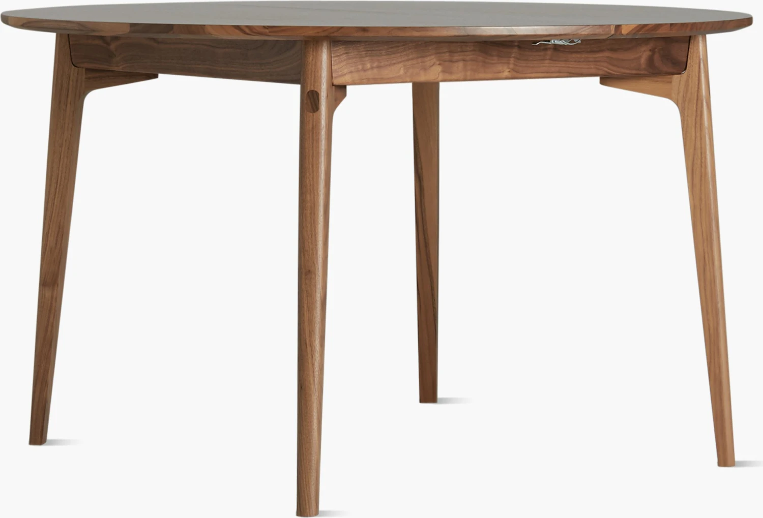Designed for small spaces, the round table extends from 49.25″ to 68.25″ with one leaf.