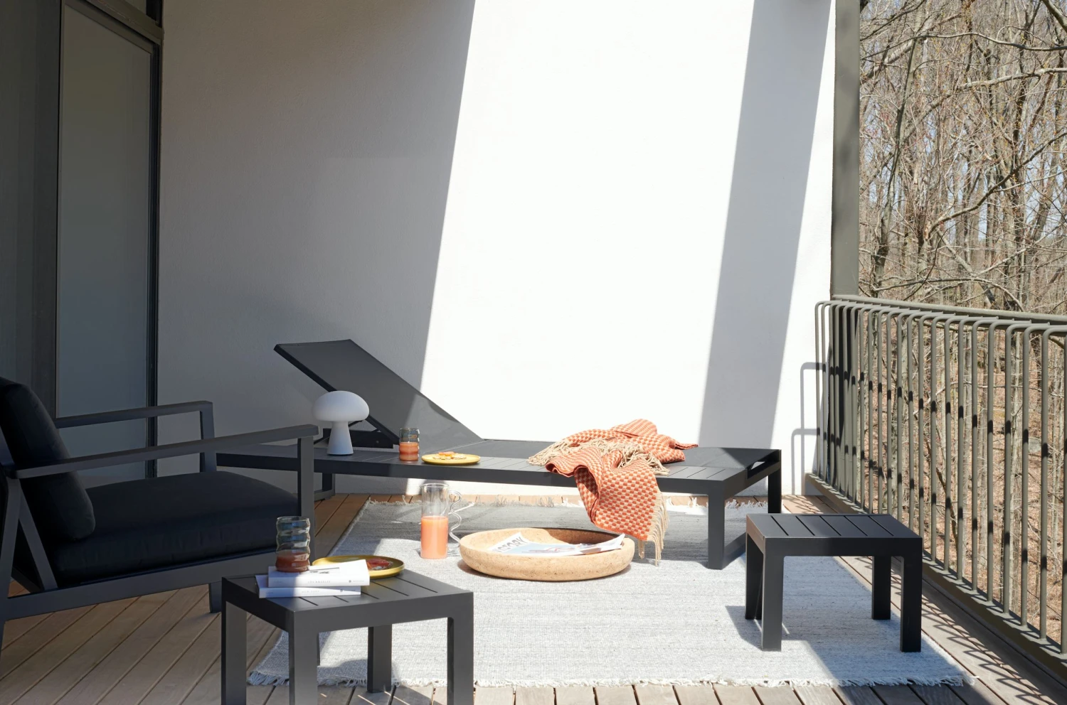 - Combines the comfort of a chaise lounge and the convenience of a large side table.