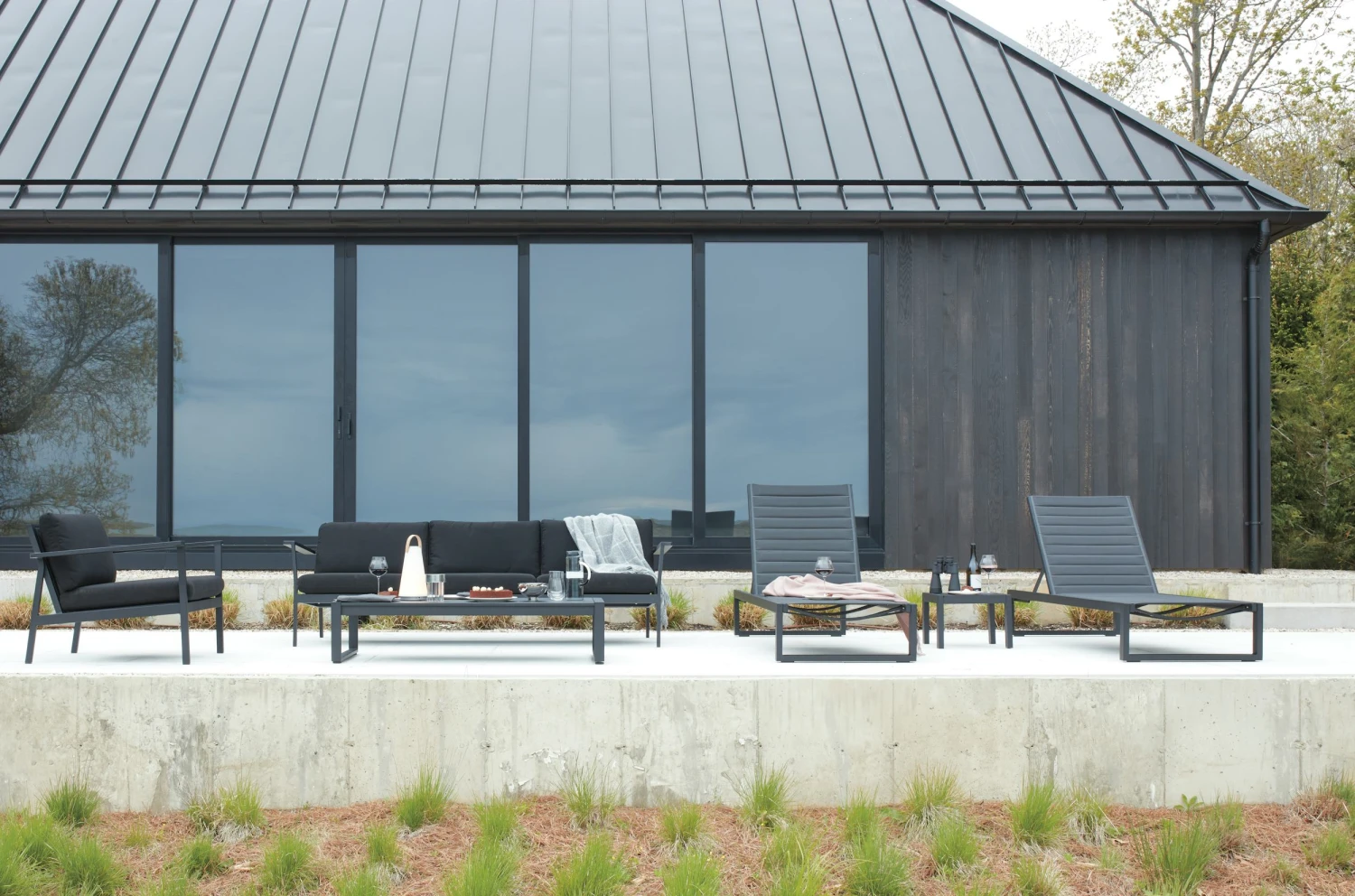 - Modern outdoor sofa made from powder-coated aluminum.