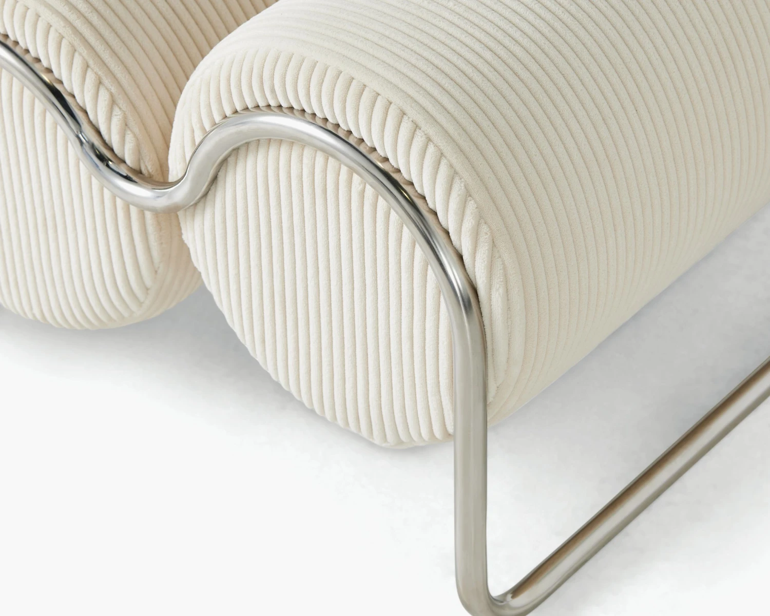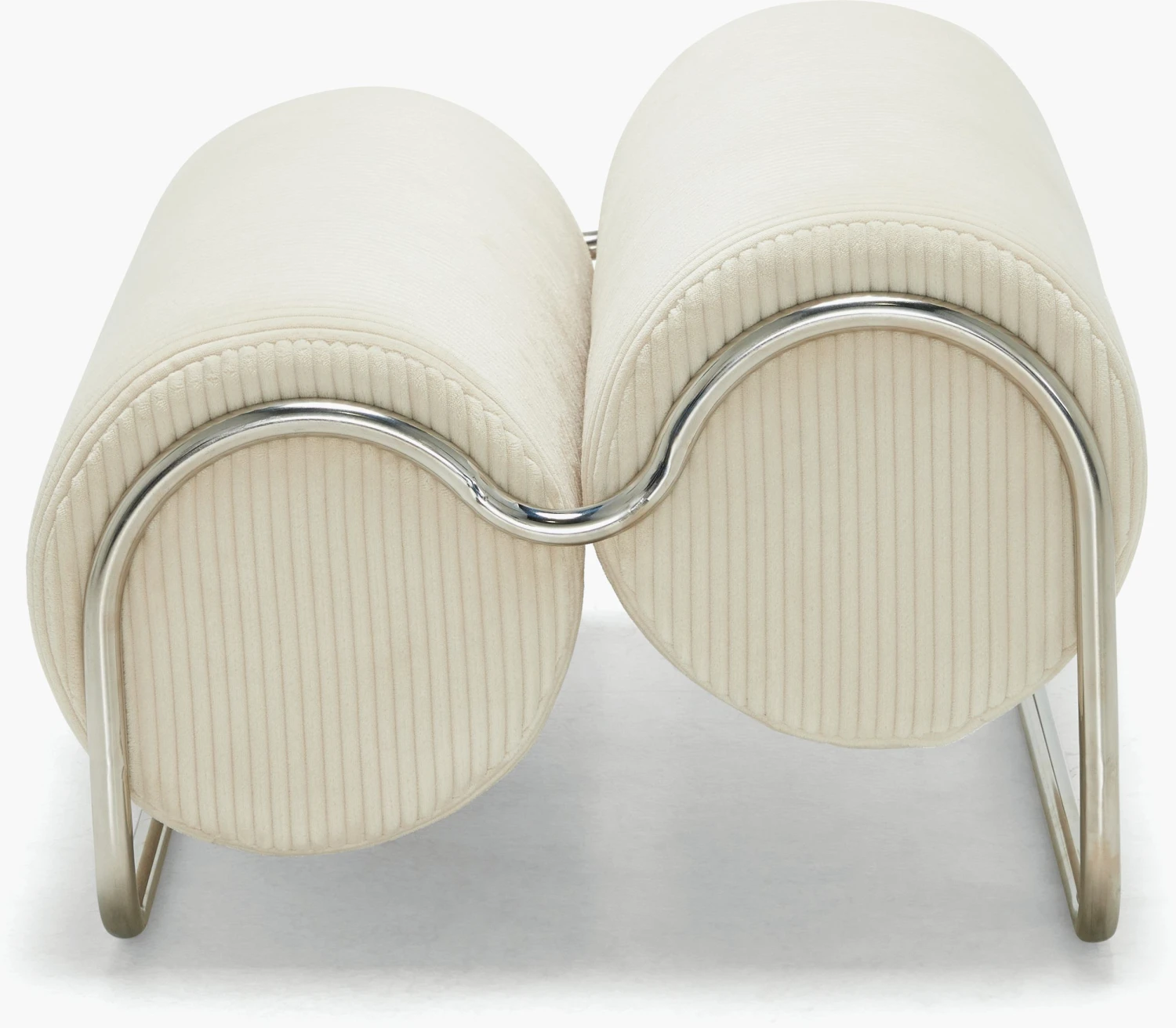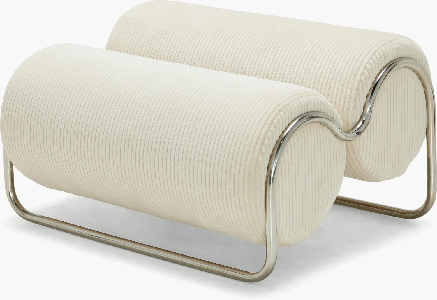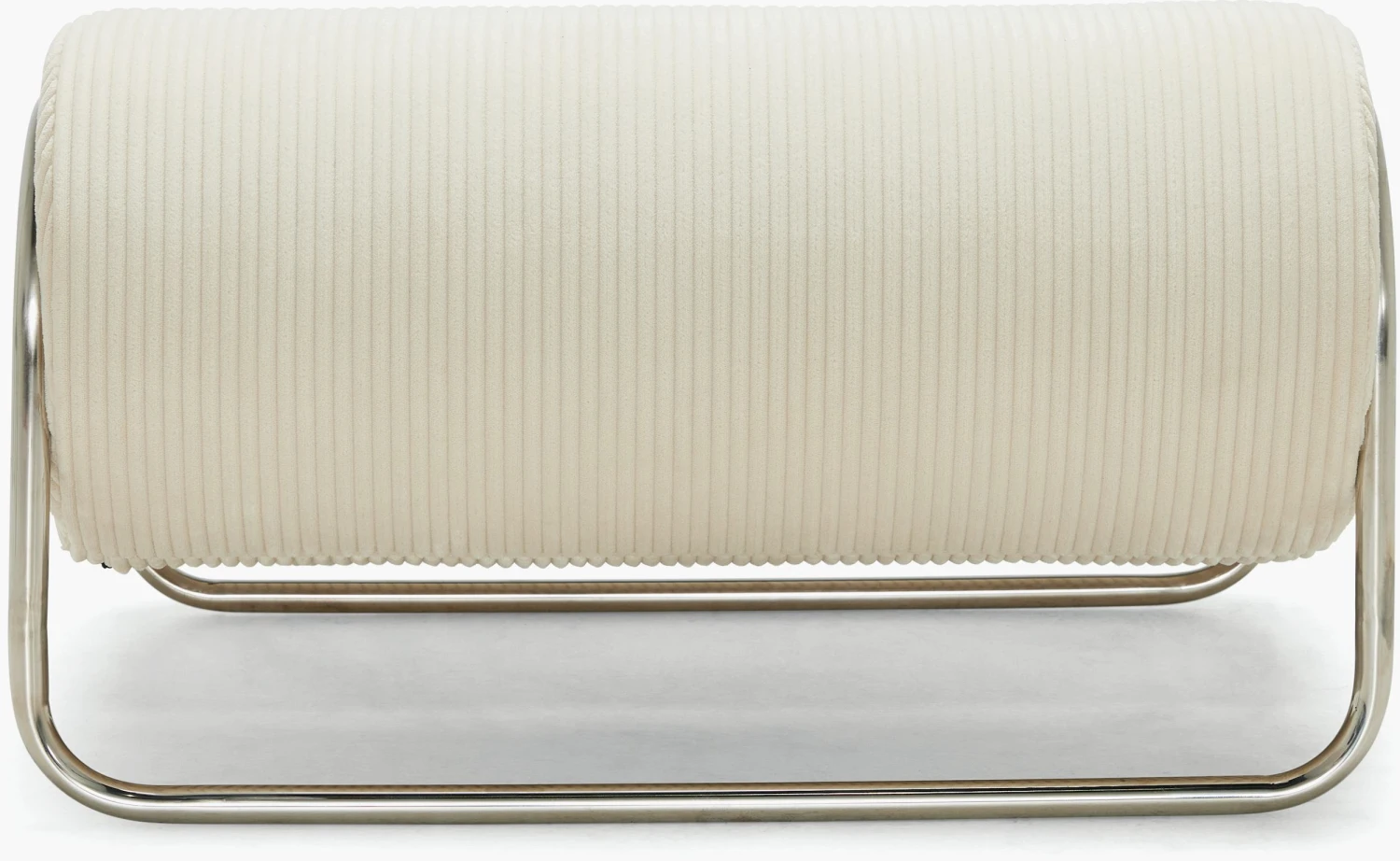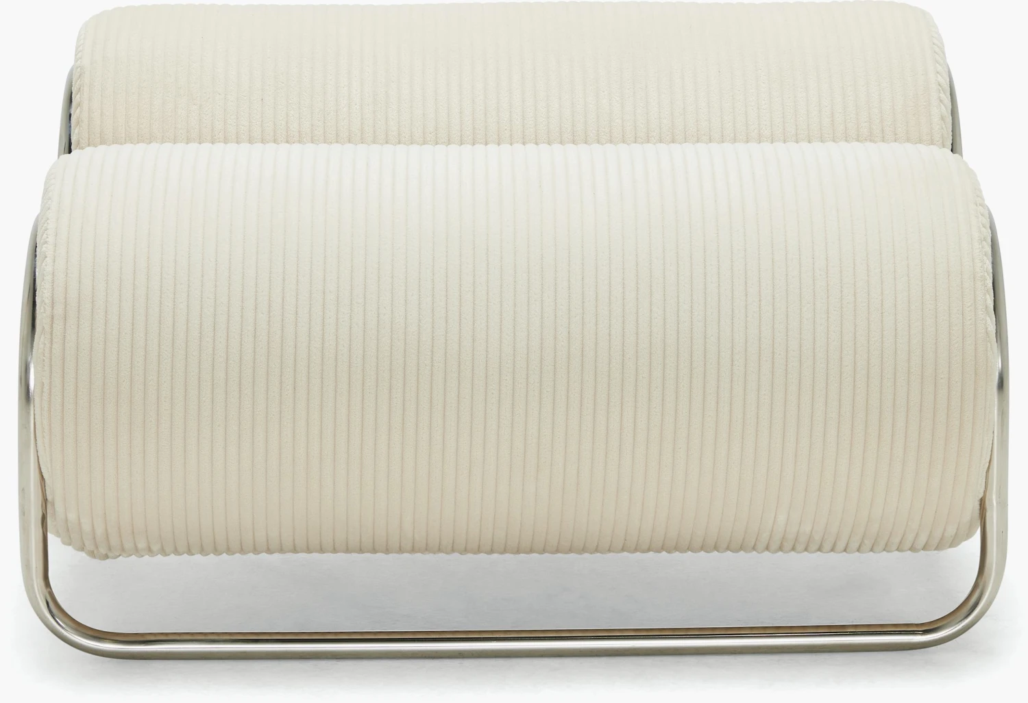 A DWR exclusive, the Chromeo Ottoman (2022) is Australian designer Sarah Ellison’s first foray into working with metal. Pairing curved chromed tubing and oversized, comfortable bolster cushions, Chromeo is a study in contrasts. Sleek and contemporary, with a wink toward its Bauhaus inspiration, this crisp new classic is offered in texturally rich upholstery. Made in China.