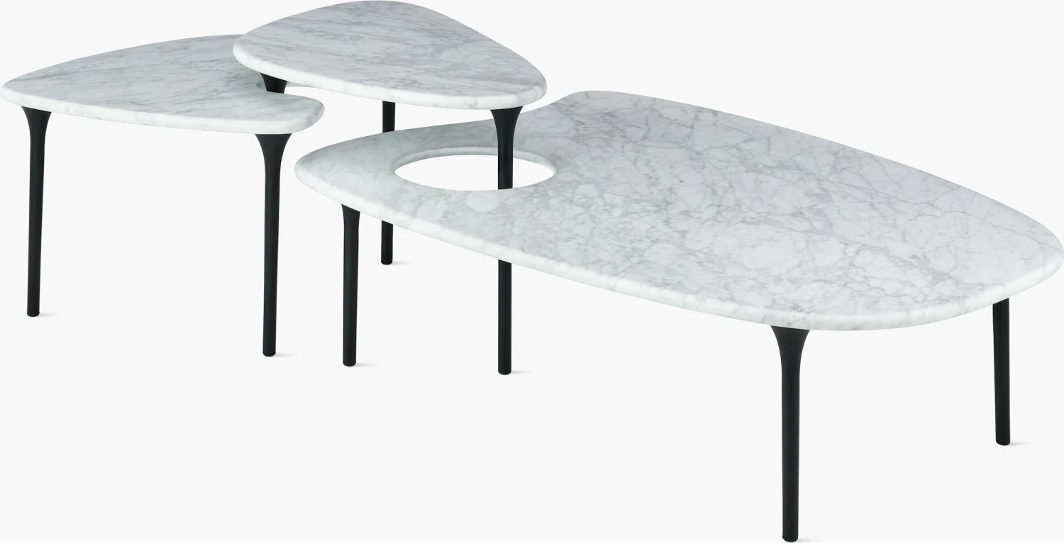 - Sculptural occasional tables with wood, stone, or marble tops.