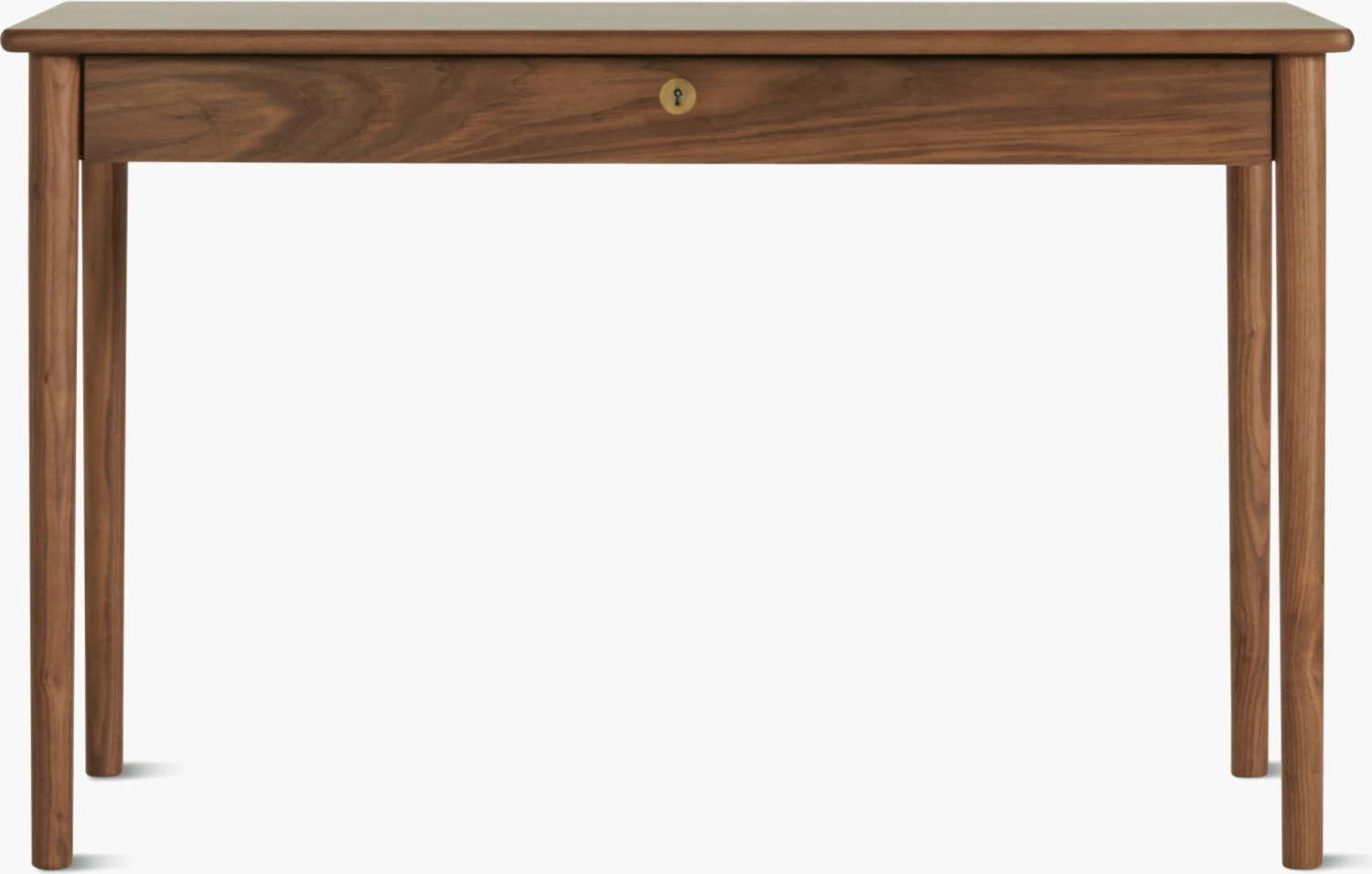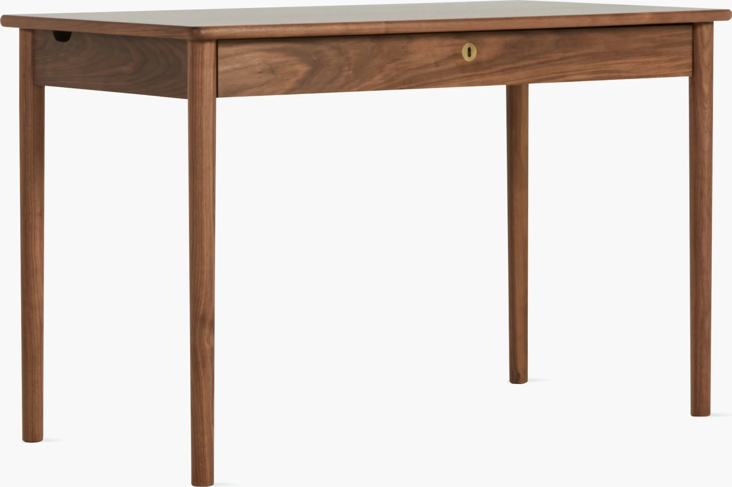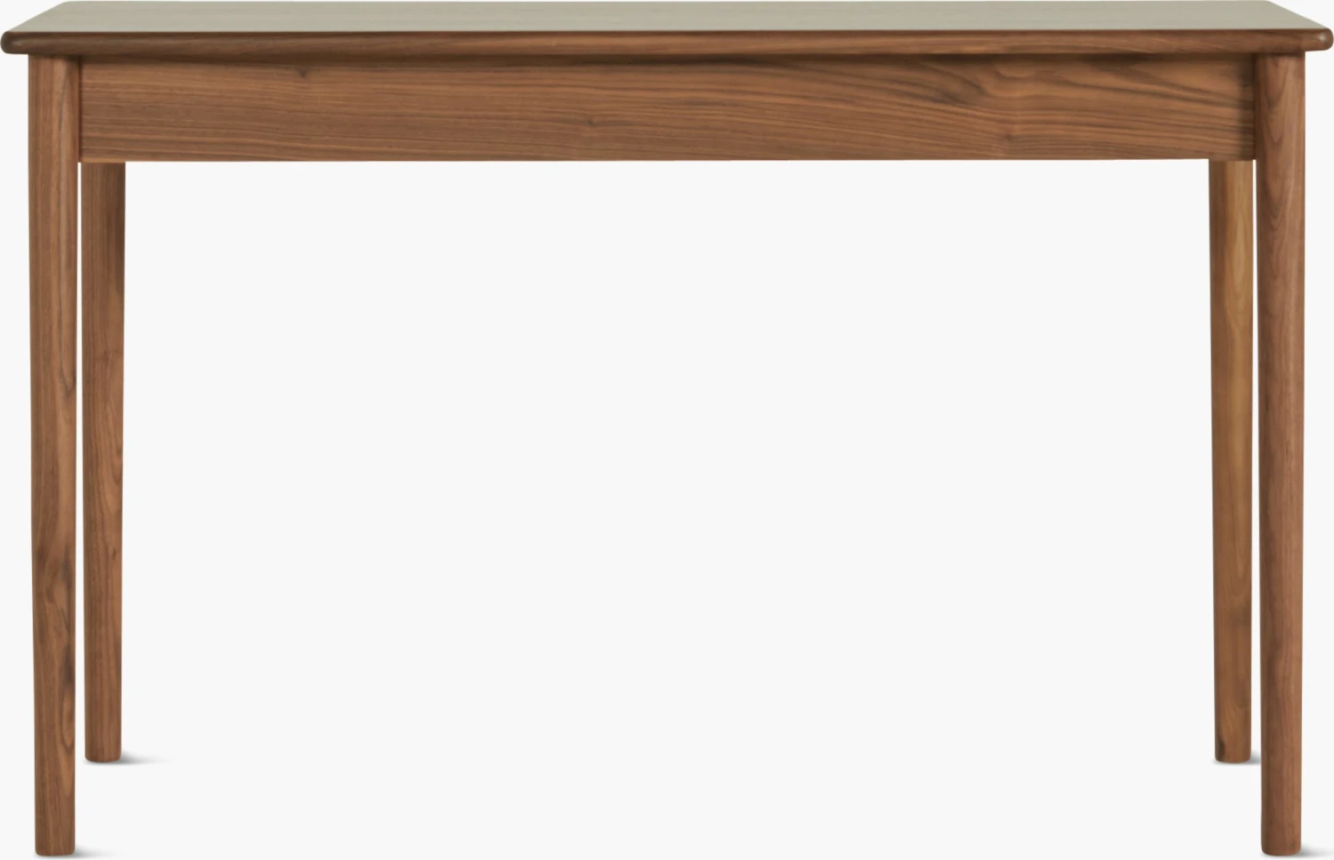 - Solid walnut or oak legs, side aprons, and drawer fronts and sides