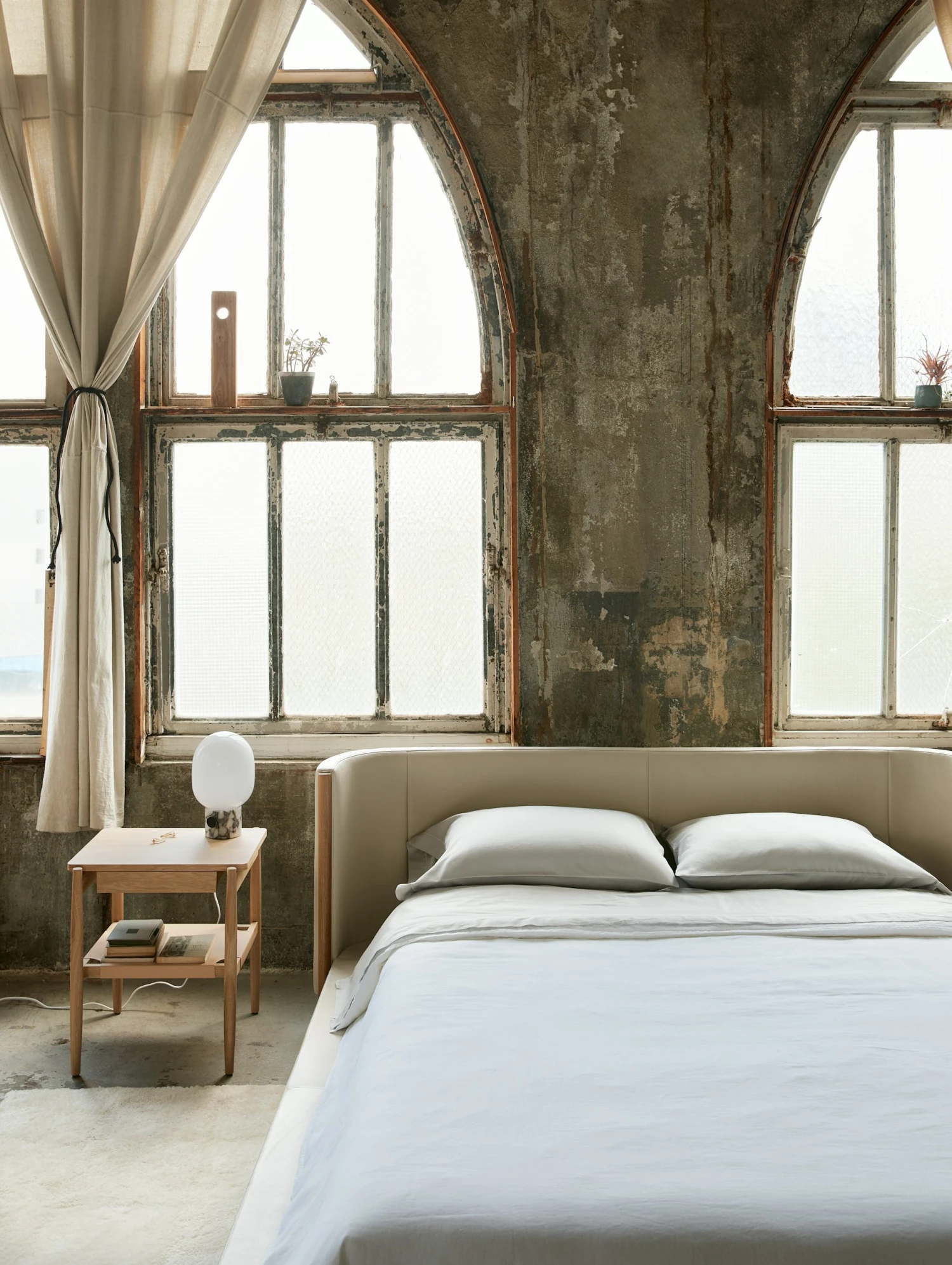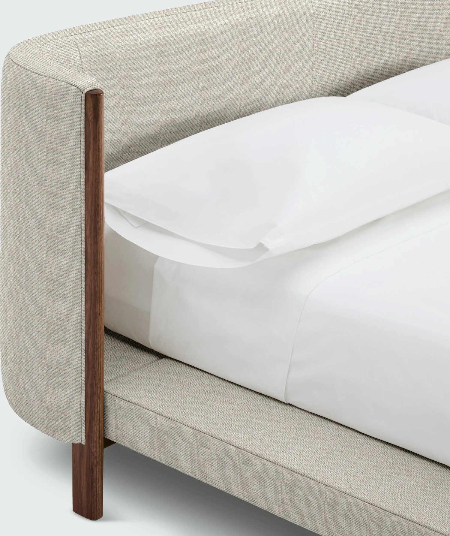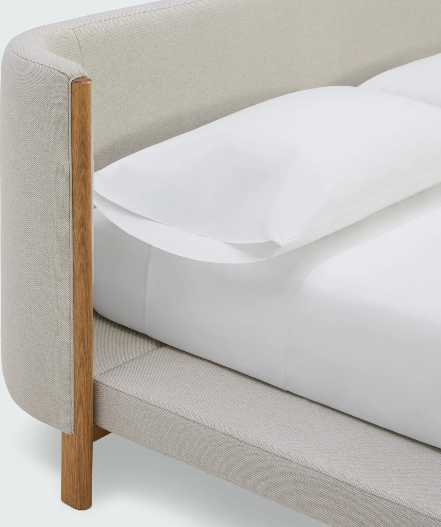 - Curved enveloping headboard.