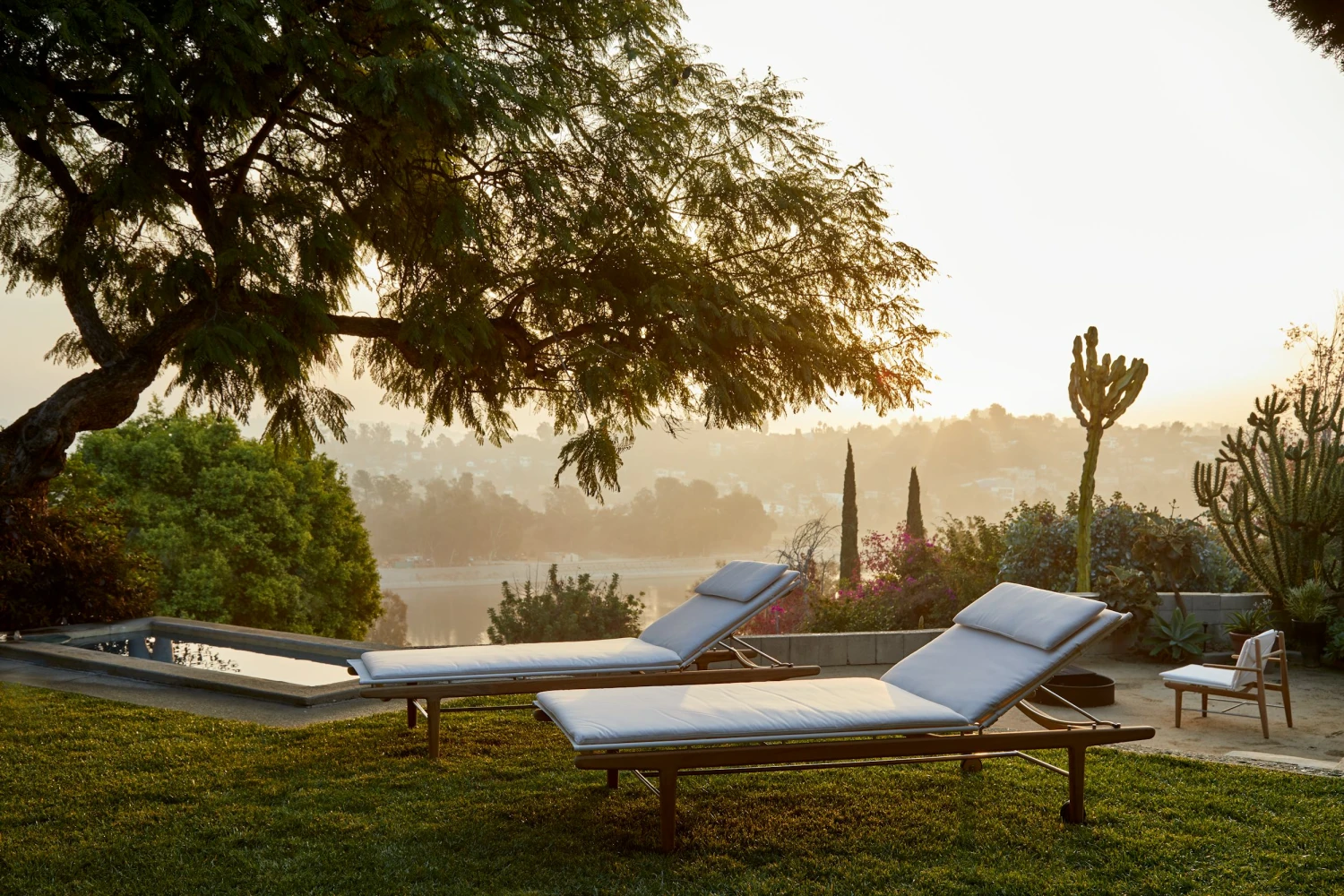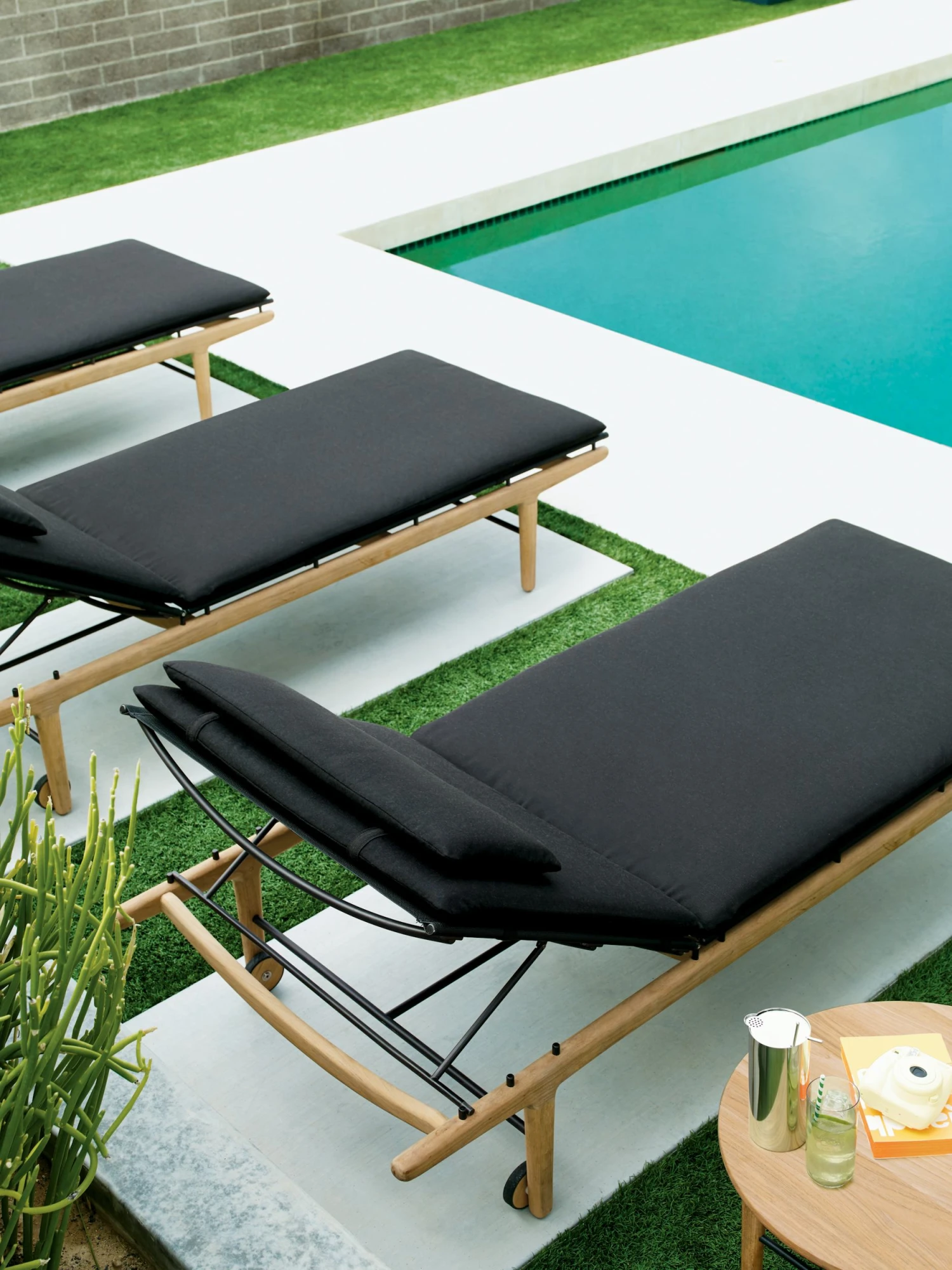 - Removable cushions covered in UV- and mildew-resistant Sunbrella fabric.