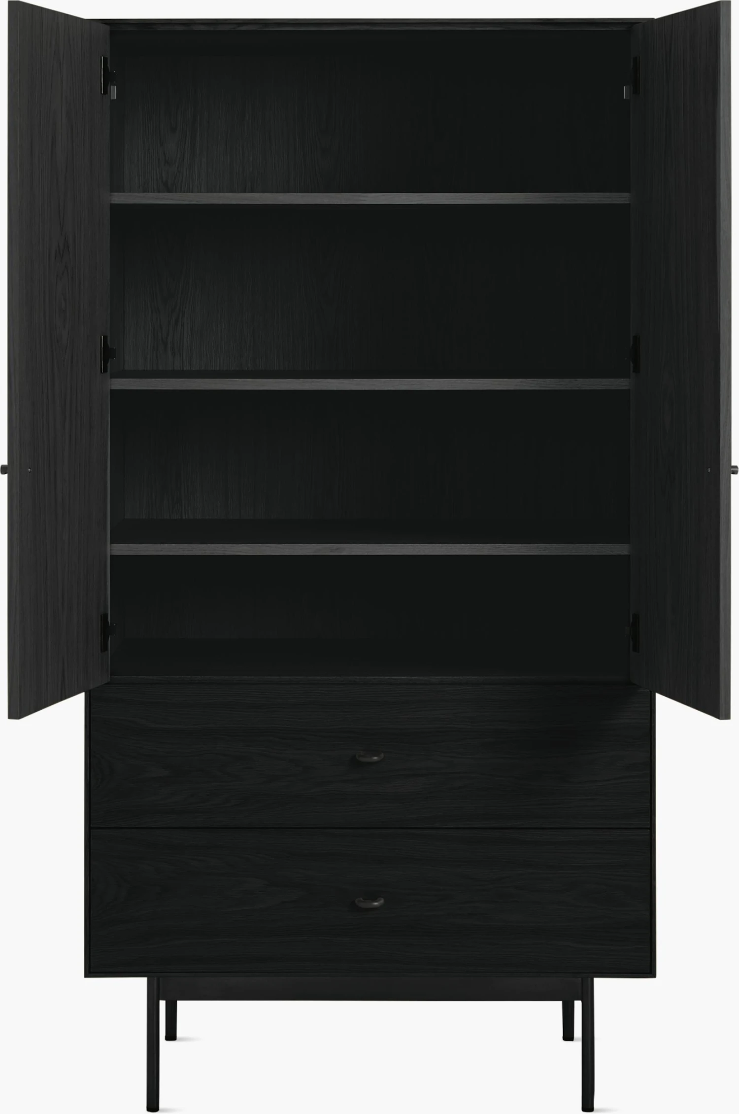 - Walnut, European white oak, or black-stained oak wood veneer over MDF