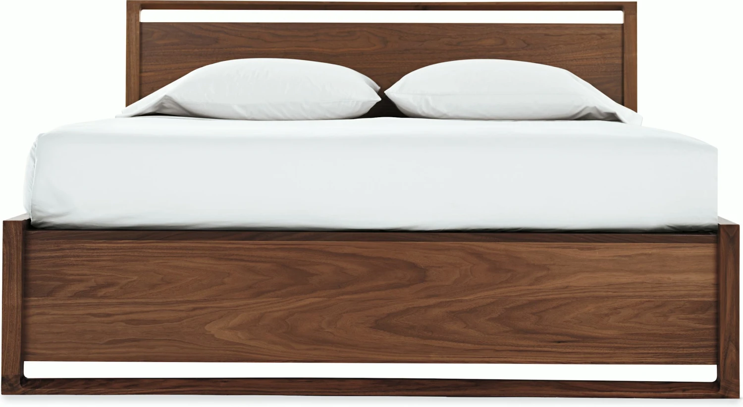 - Walnut or oak veneer over MDF headboard and footboard with thick solid walnut or oak edging