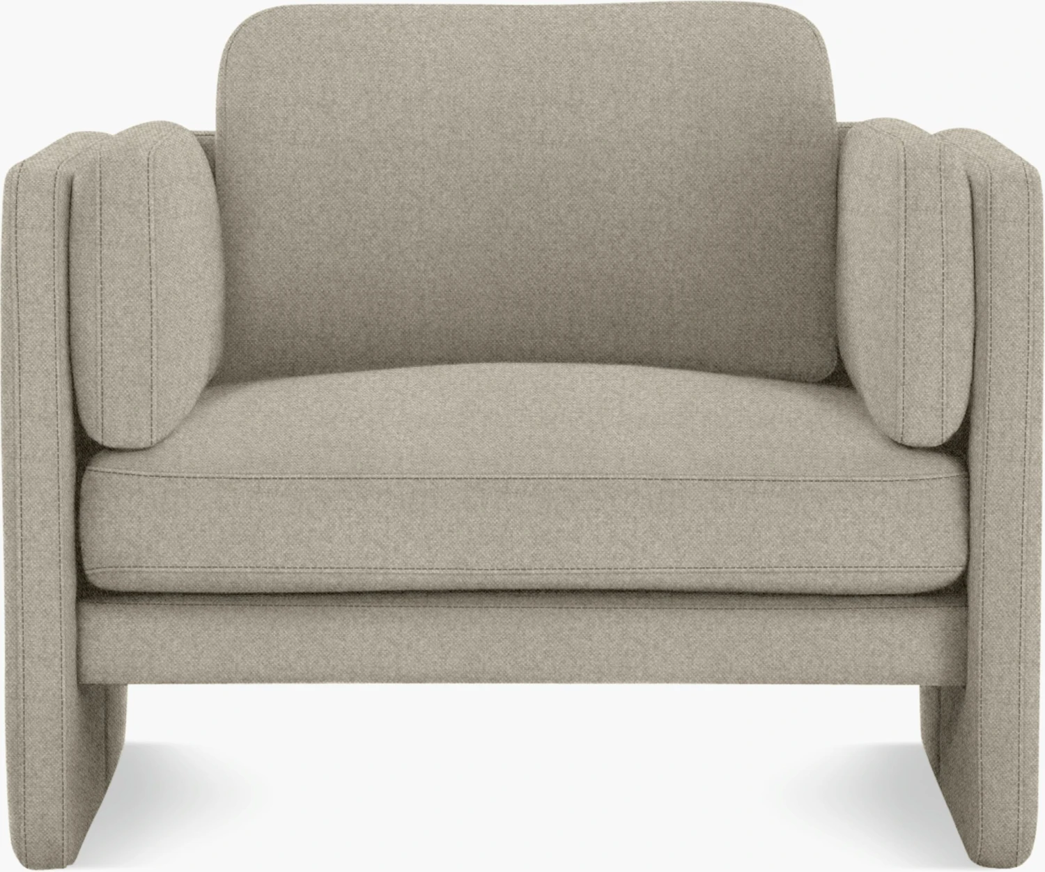 - Fully upholstered cushions, frame, and legs finished with a single-needle topstitched detail.
