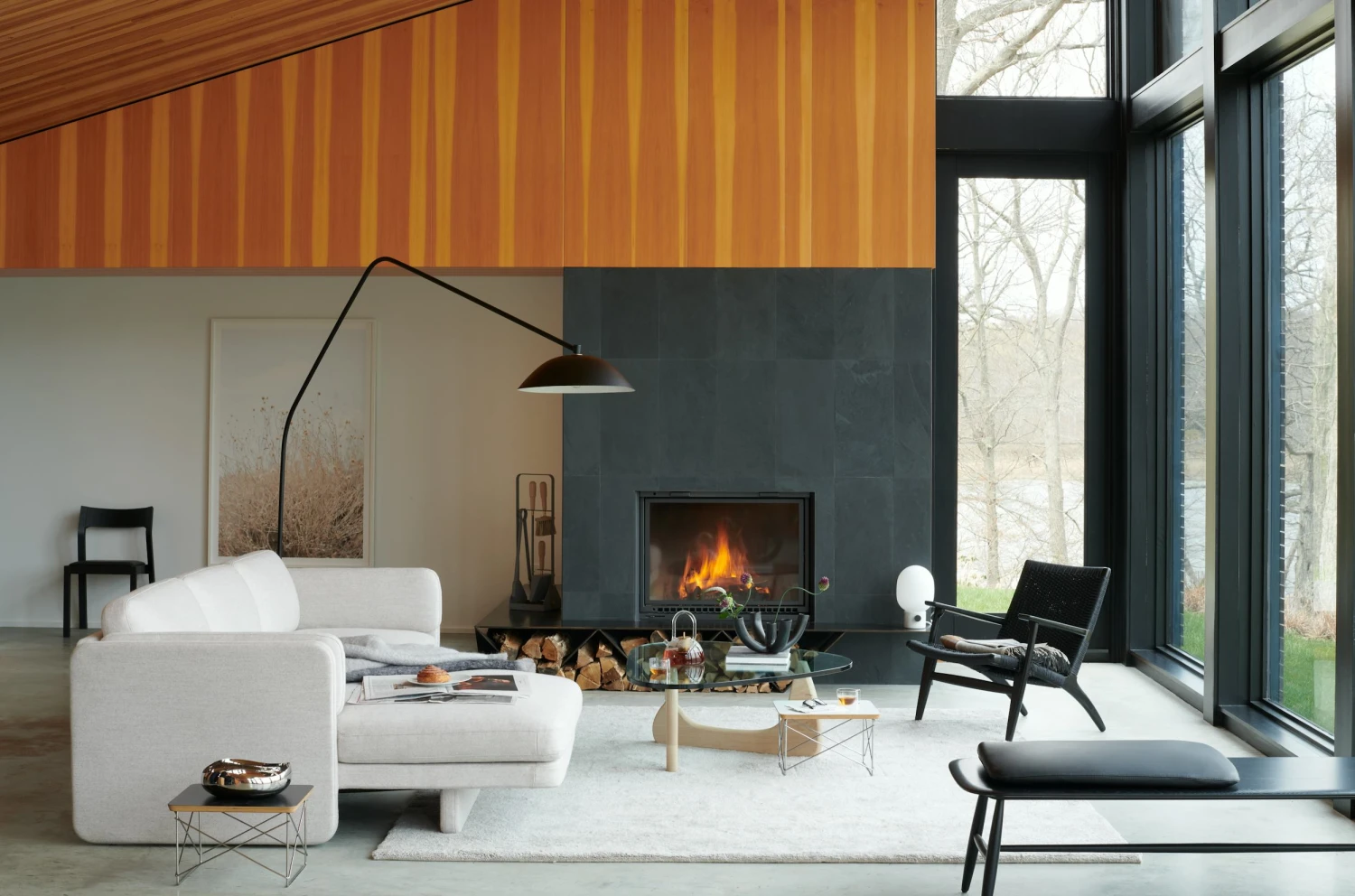 - Cantilever-style chaise looks like it’s floating.