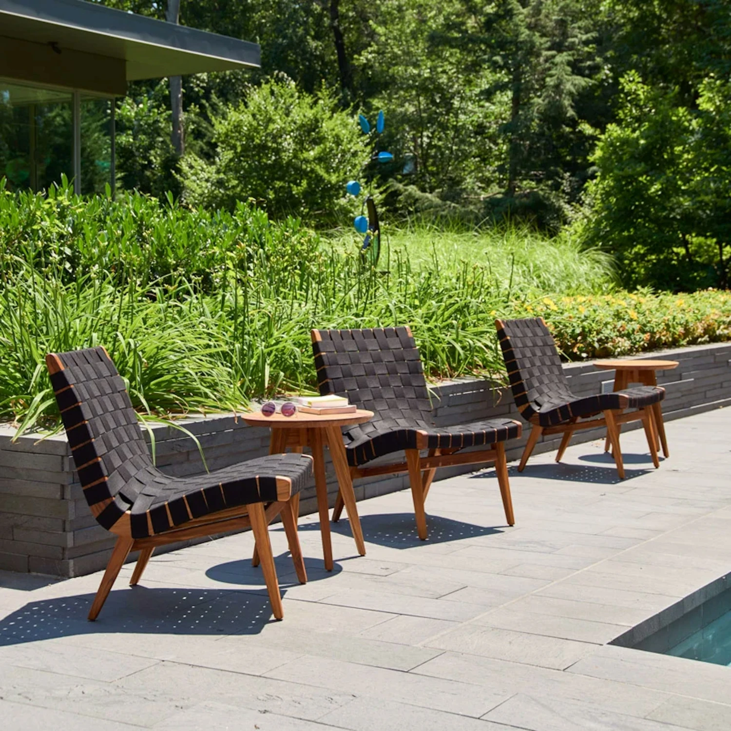 - Streamlined oiled teak frame suitable for use indoors or out.