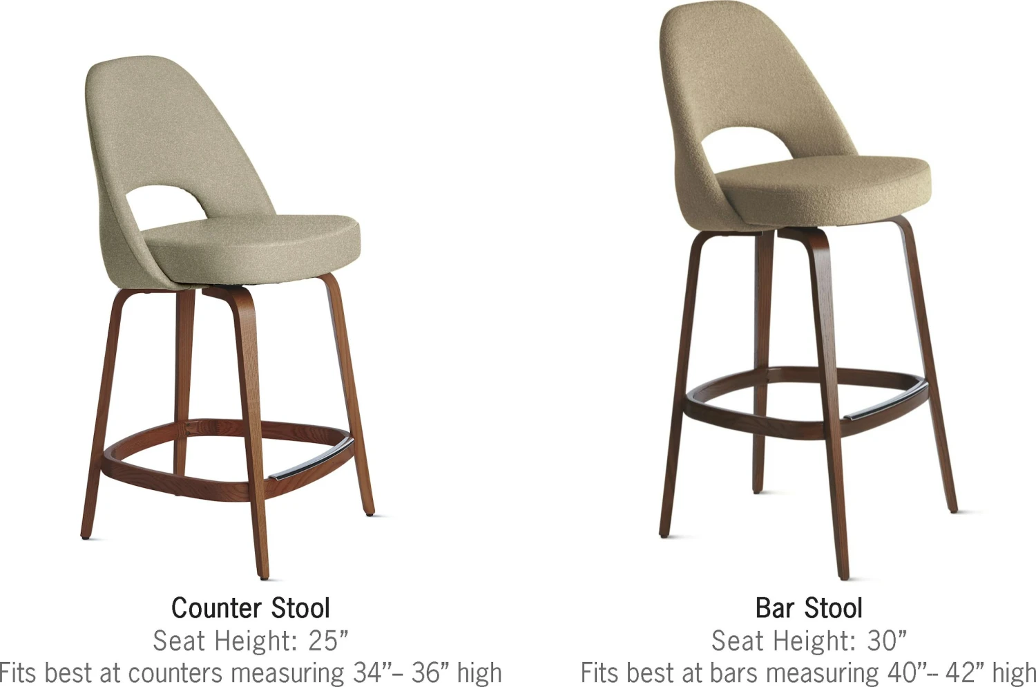 - Steel legs or solid steam-bent wood legs