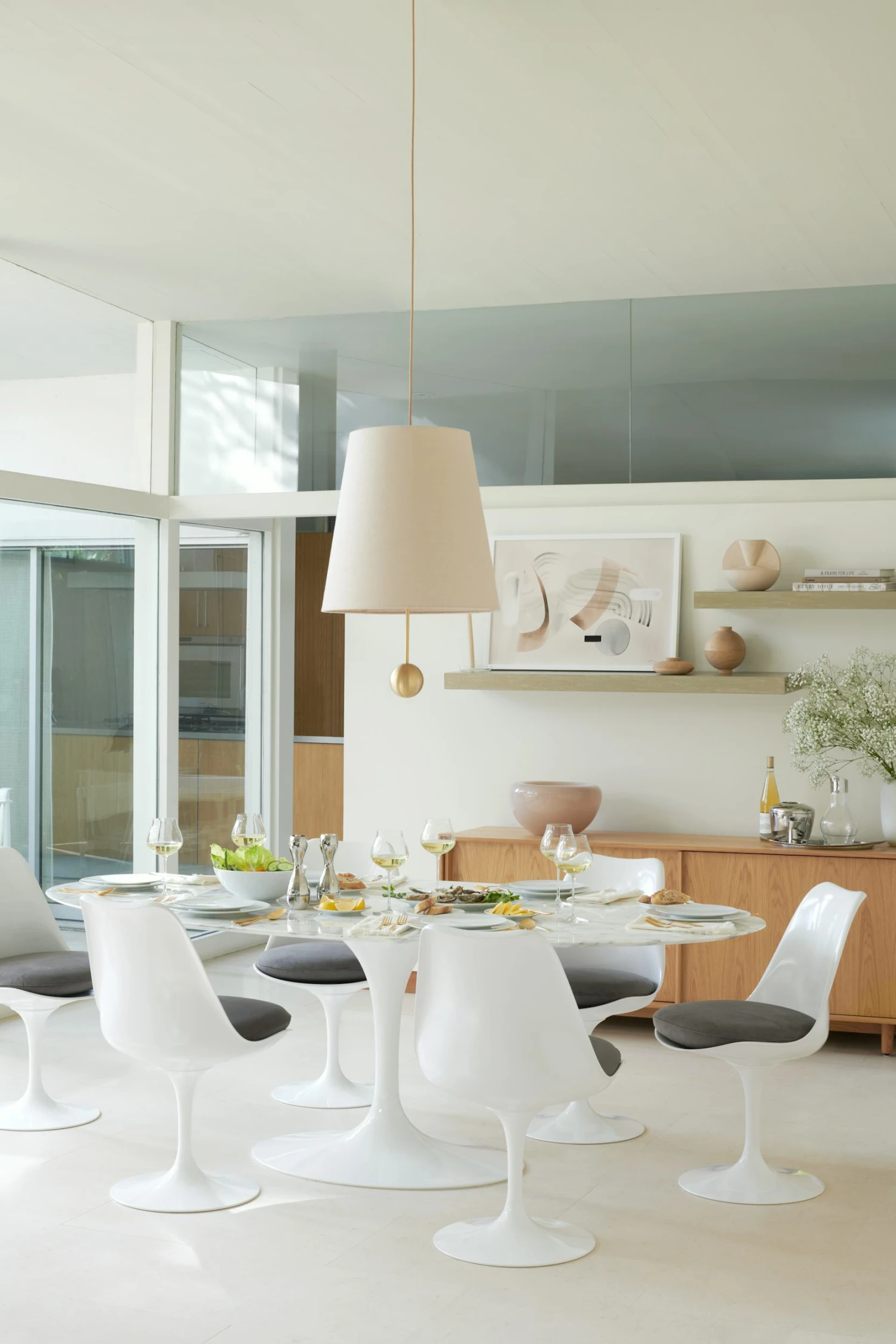 “The purpose of architecture is to shelter and enhance man’s life on earth and to fulfill his belief in the nobility of his existence,” said Eero Saarinen in 1959. Saarinen’s architectural legacy communicates this sentiment of giddy potential and unfettered optimism in post-war America seen in iconic projects like the Gateway Arch in St. Louis and in his sculptural furniture designed for Knoll.