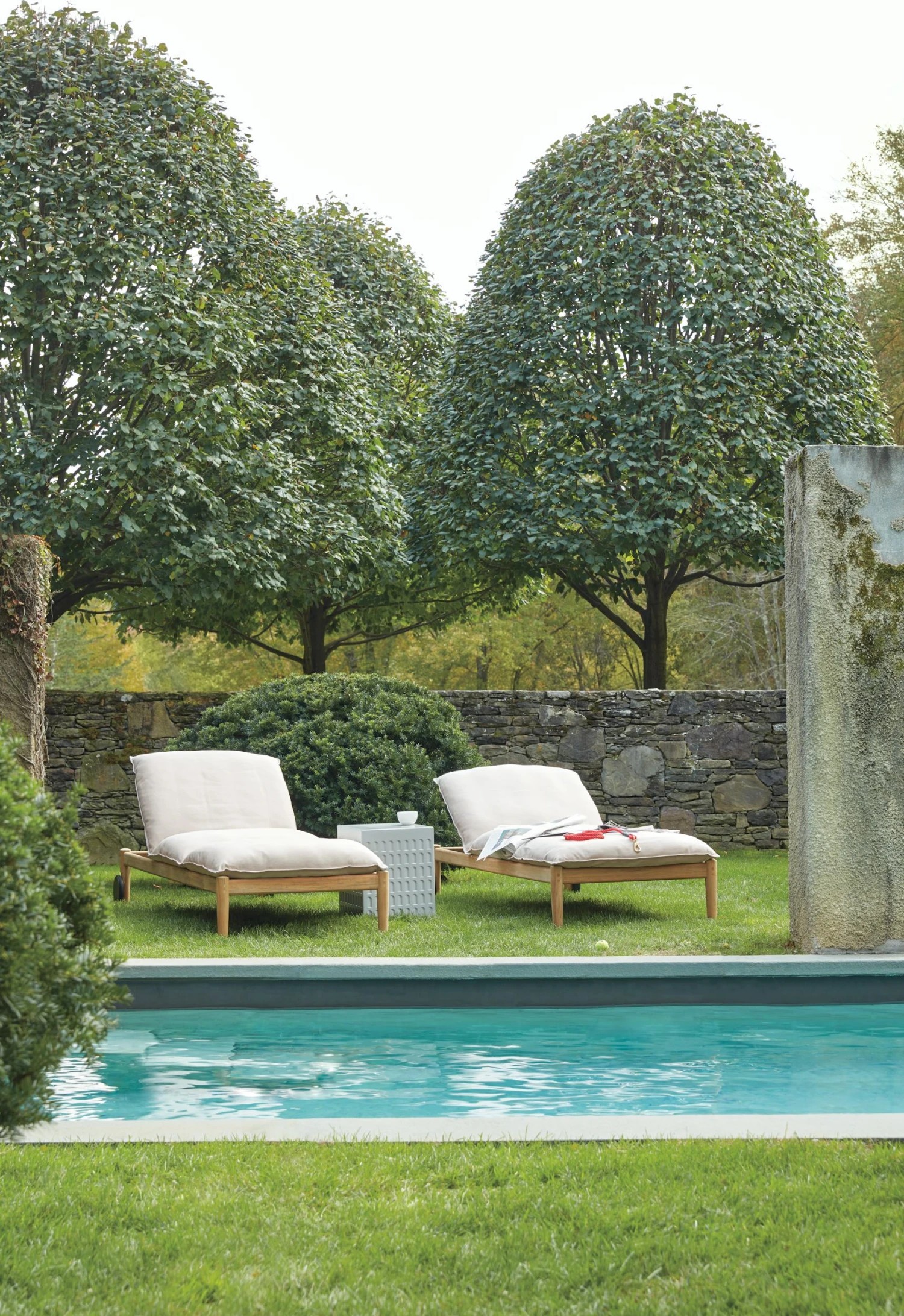 We recommend customized DWR rain covers for teak furniture left outdoors for long periods of inclement weather. DWR rain covers are breathable to mitigate mildew growth. In winter, store in a shed or garage. Store cushions separately to prevent transfer of moisture.